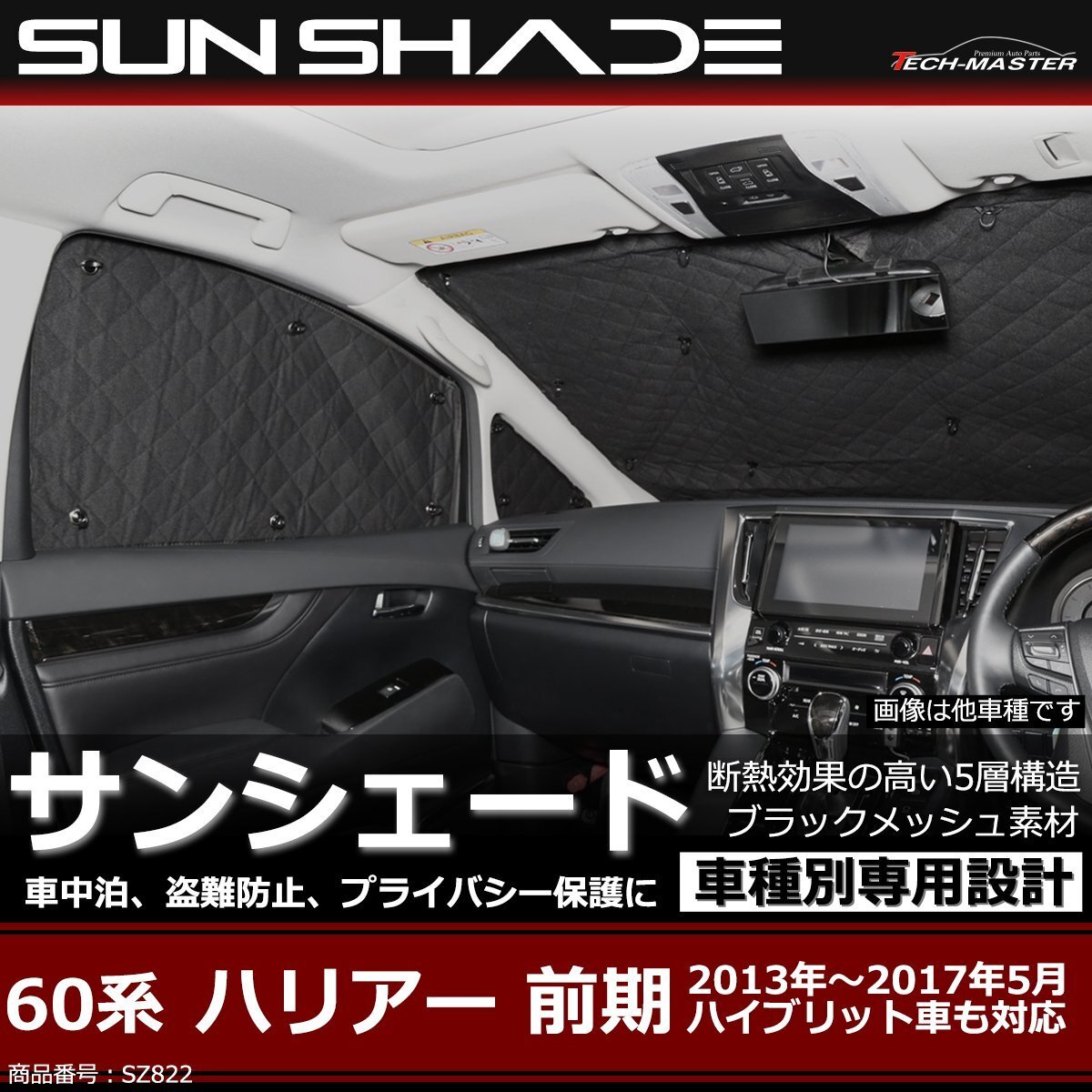 > 60ハリアー 前期 サンシェード 全窓用 5層構造 ブラックメッシュ 車中泊 アウトドア 日よけ SZ822