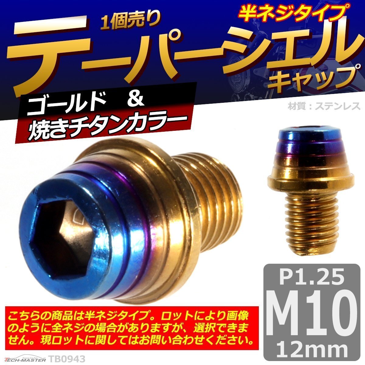 > M10×12mm P1.25 テーパーシェル キャップボルト ステンレス 車/バイク/自転車 ドレスアップ ゴールド&焼きチタンカラー 1個 TB0943