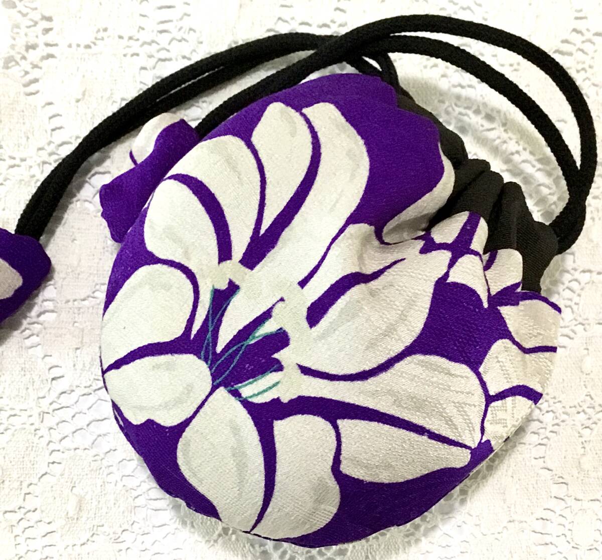 - 古布885小丸袋・絹( 大胆な百合)時代着物