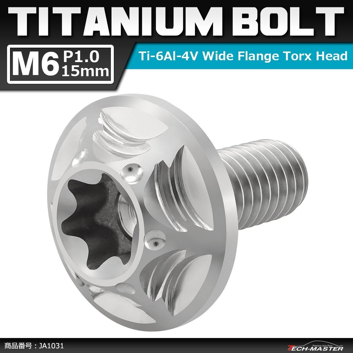 - M6×15mm P1.0 64チタン合金 トルクス穴 フランジ付き ボタンボルト シルバーカラー 素地 JA1031