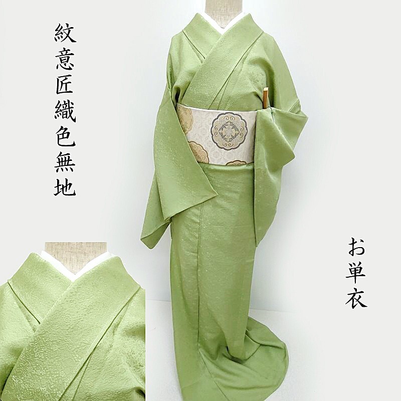 - Club藤★単衣 色無地 紋意匠織 若葉色 フォーマル お茶席着物 御仕立上り(3448)