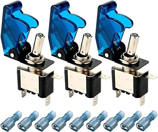 - KILIGEN ミサイルスイッチ 12V-24V 20A 3個セット LED搭載 3極タイプ ON-OFF (青い) AF670