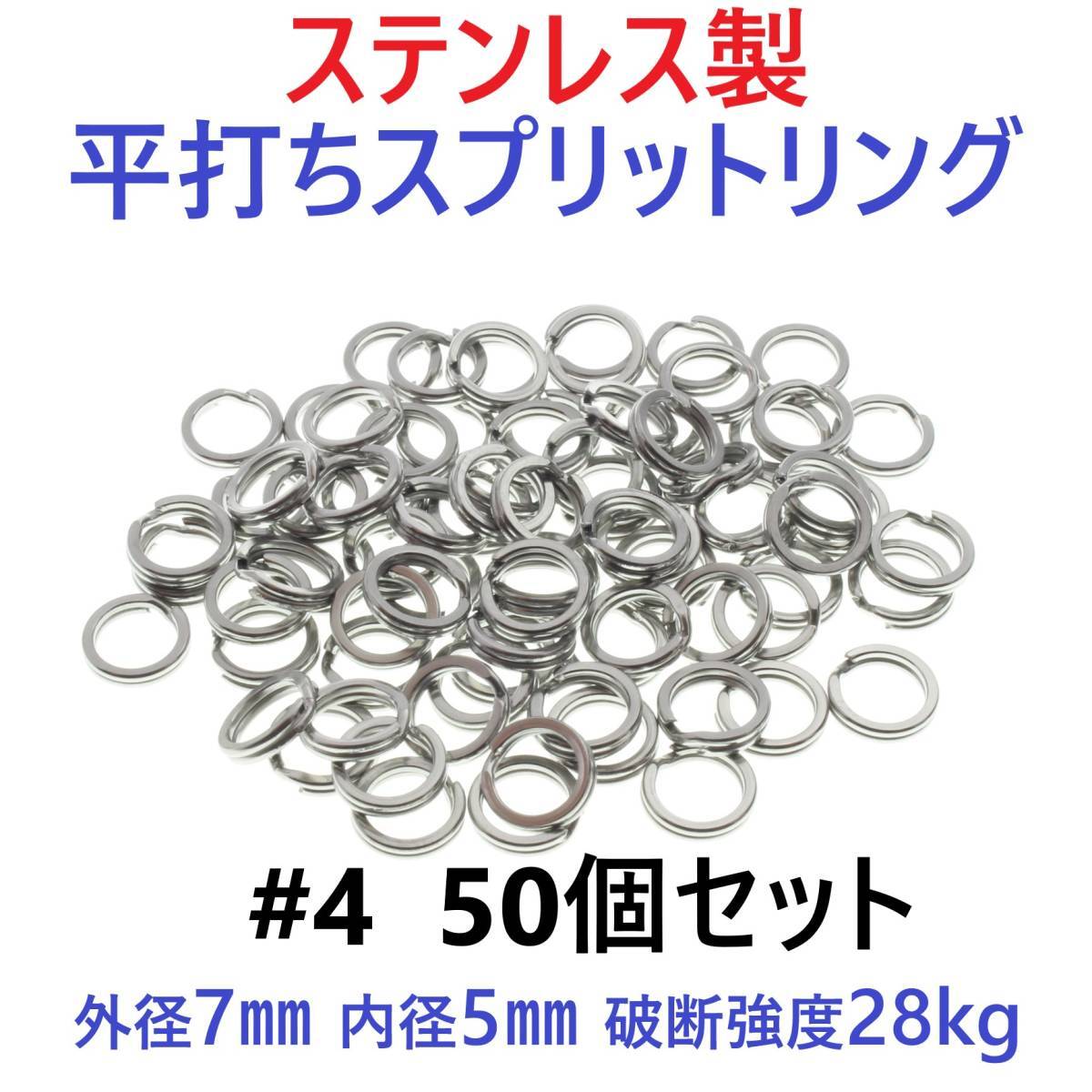 > 【送料150円】ステンレス製 平打ち スプリットリング #4 外径7mm 50個セット ルアーのフック交換に!