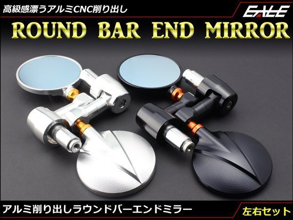 - アルミ CNC 削り出し ラウンド(丸型) バーエンド ミラー 左右セット ブルーミラー採用 ハンドル内径18mm以下に対応 シルバー S-267-S
