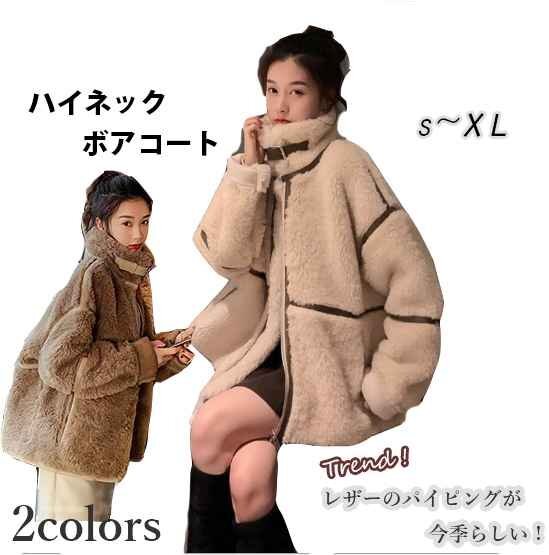 - 秋冬新作 トレンド レディース アウター ハイネック ボアコート もこもこ 軽い 暖かい 防寒 ブルゾン XL ベージュ
