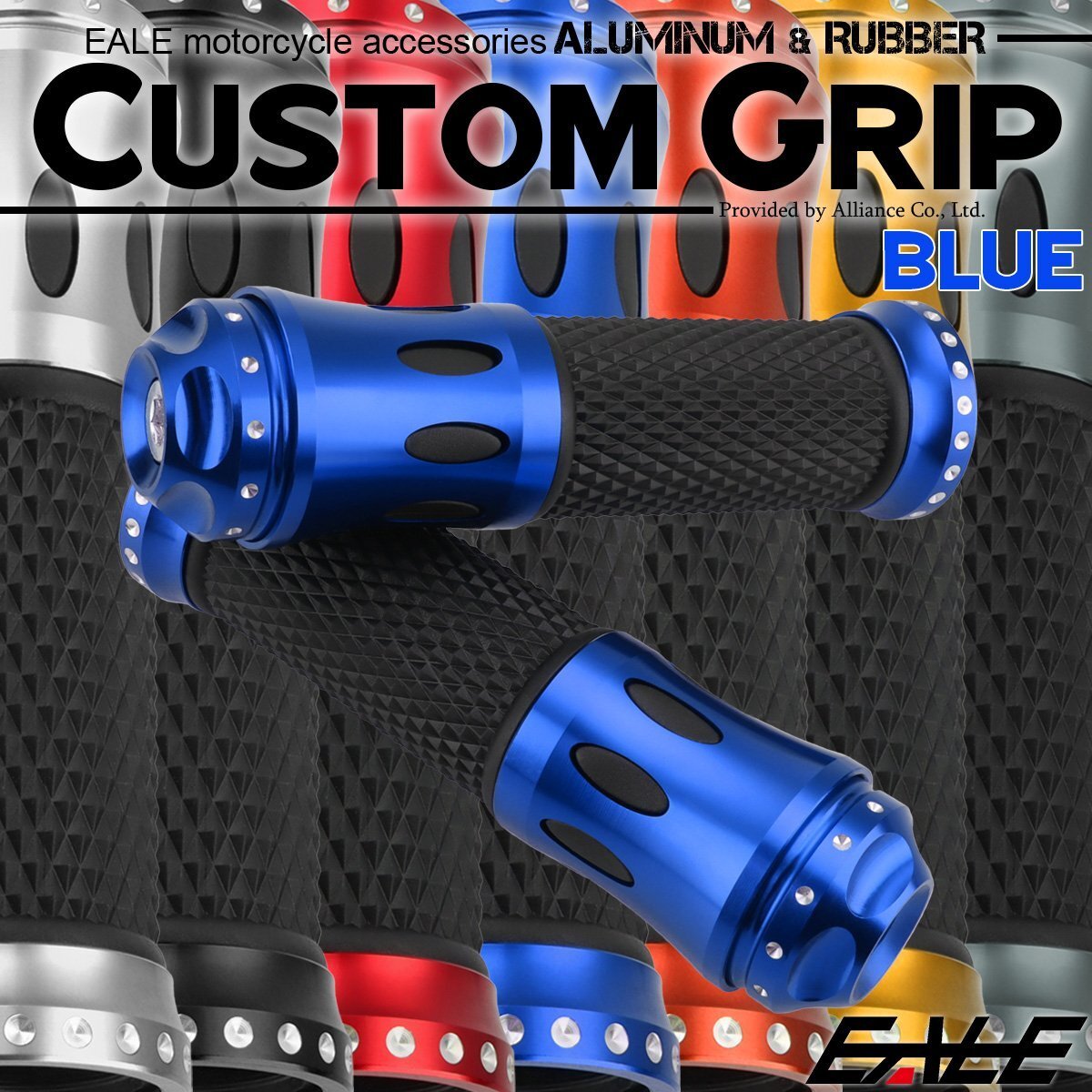 > バイク グリップ ハンドル アルミ ラバー バーエンド付き バランサー 22.2mm用 ブルー 左右セット カスタム ドレスアップ S-579-B