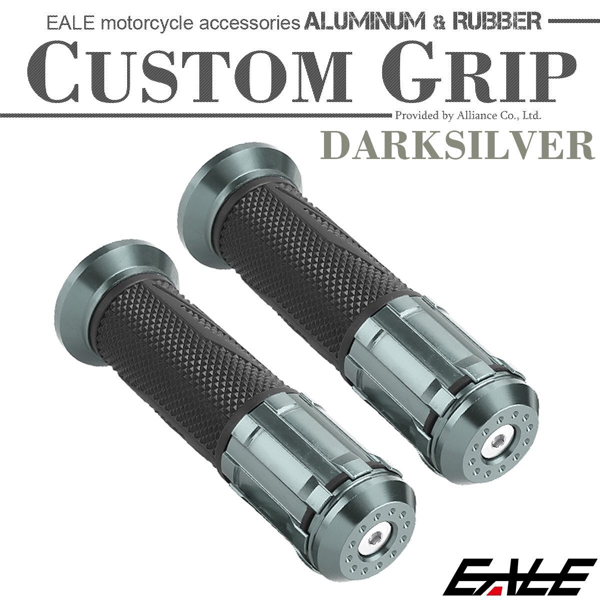 - バイク グリップ ハンドル アルミ ラバー バーエンド付き 22.2mm用 ダークシルバー 左右セット カスタム ドレスアップ S-245-DS