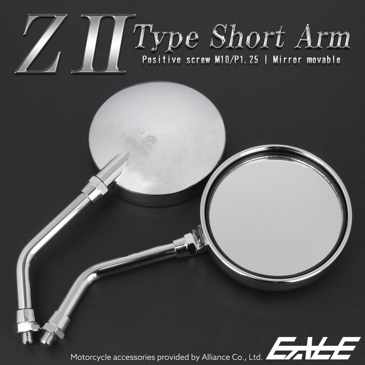- メッキ ミラー ショートアーム Z2タイプ 左右セット M10 正ネジ 凸面鏡 鏡面可動 シルバー S-533-ME