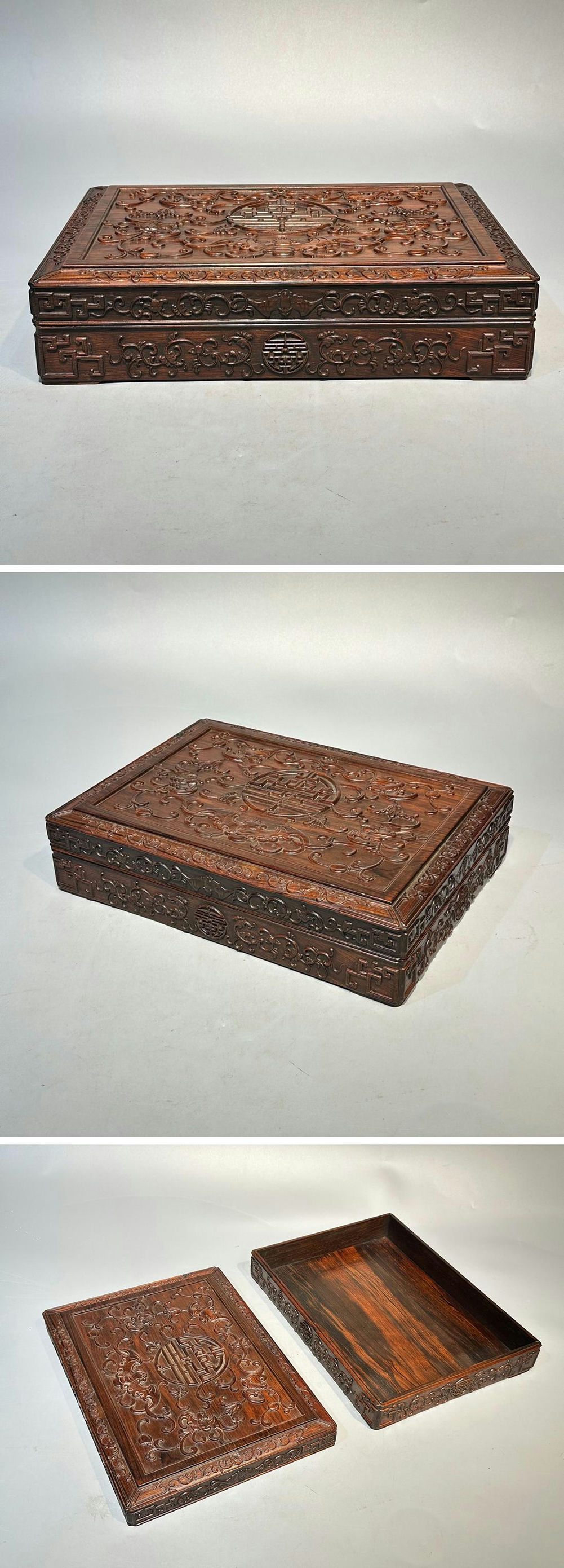 - ■観心・時代旧蔵■K0896清時代 黄花梨文房箱 黄花梨木細密細工★古置物★古賞物★古擺件★蒐集家放出★唐物