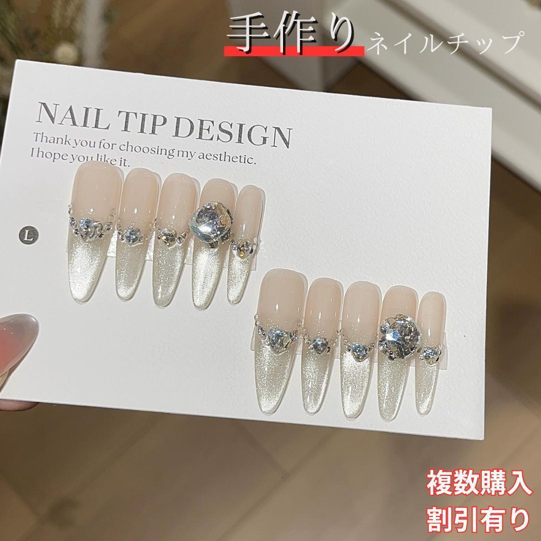 - ネイルチップ ロング ビジュー ヌーディ グラデ Mサイズ 量産型 地雷系 韓国 付け爪 ギャル 大人