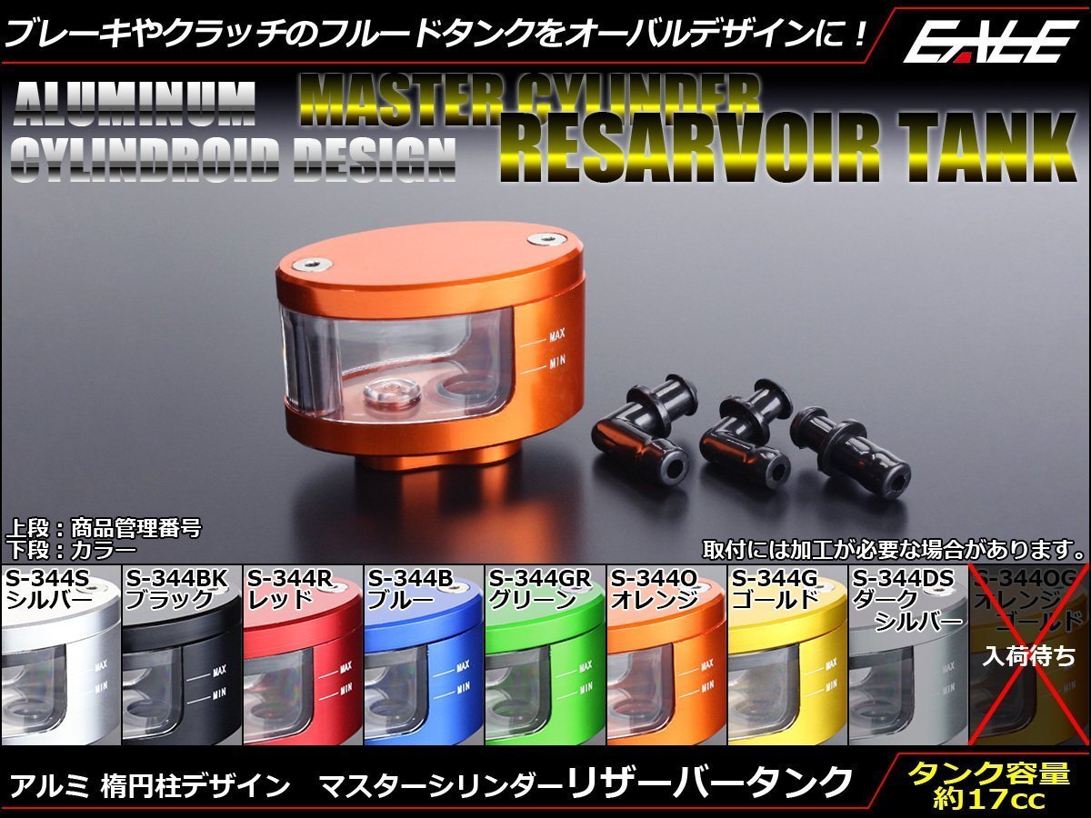 - 別体式 楕円型 アルミ リザーバータンク マスターシリンダー 汎用 フロント リア ブレーキ 油圧 クラッチ オレンジ S-344-O