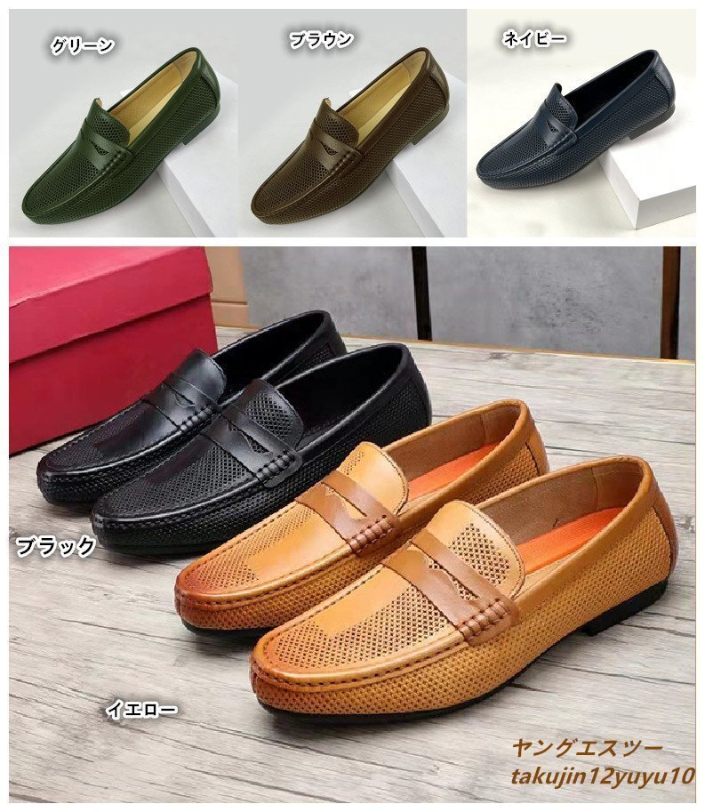 - 超美品 メンズ ローファー 本革 レザーシューズ 高級牛革 ドライビングシューズ スリッポン 柔らか スニーカー 紳士靴 五色 黒 27.0cm