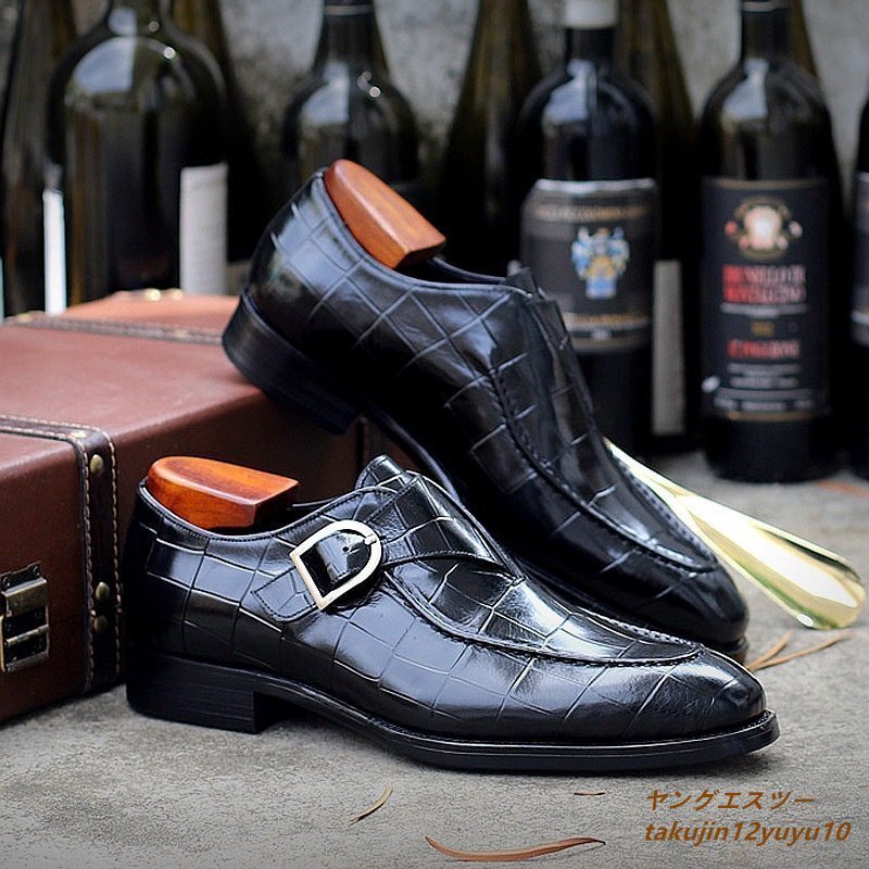 - 特売◆最上級&ビジネスシューズ メンズシューズ 本革 レザーシューズ 革靴 モンクストラップ 職人手作り 紳士靴 牛革 ブラック 24.5cm