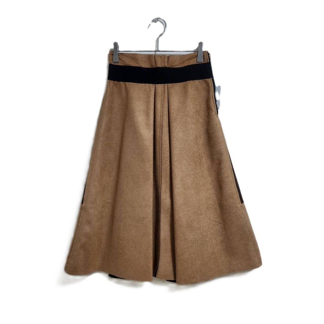 - 新品 Edgeline フレアスカート F ブラウン 配色切替 秋冬素材 上品