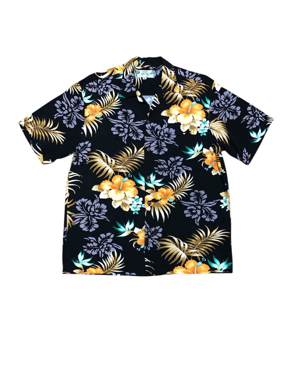 - 【90s】TWO PALMS アロハシャツ Mサイズ 黒 アメリカ製 ヴィンテージ