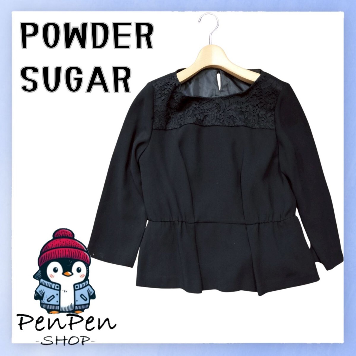 > Eimy Pearl by POWDER SUGAR パウダーシュガー 長袖 トップス ブラウス 9R Mサイズ M 黒 ブラック レース ペプラム ボタン