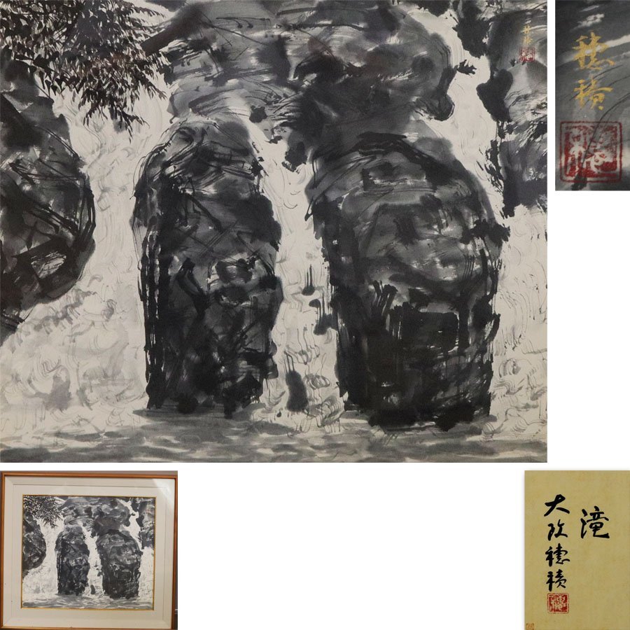 - 《源》【即決・送料無料】《初心だし》伊予路の旅展 大政穗積 筆「滝」(共シール付)/額装