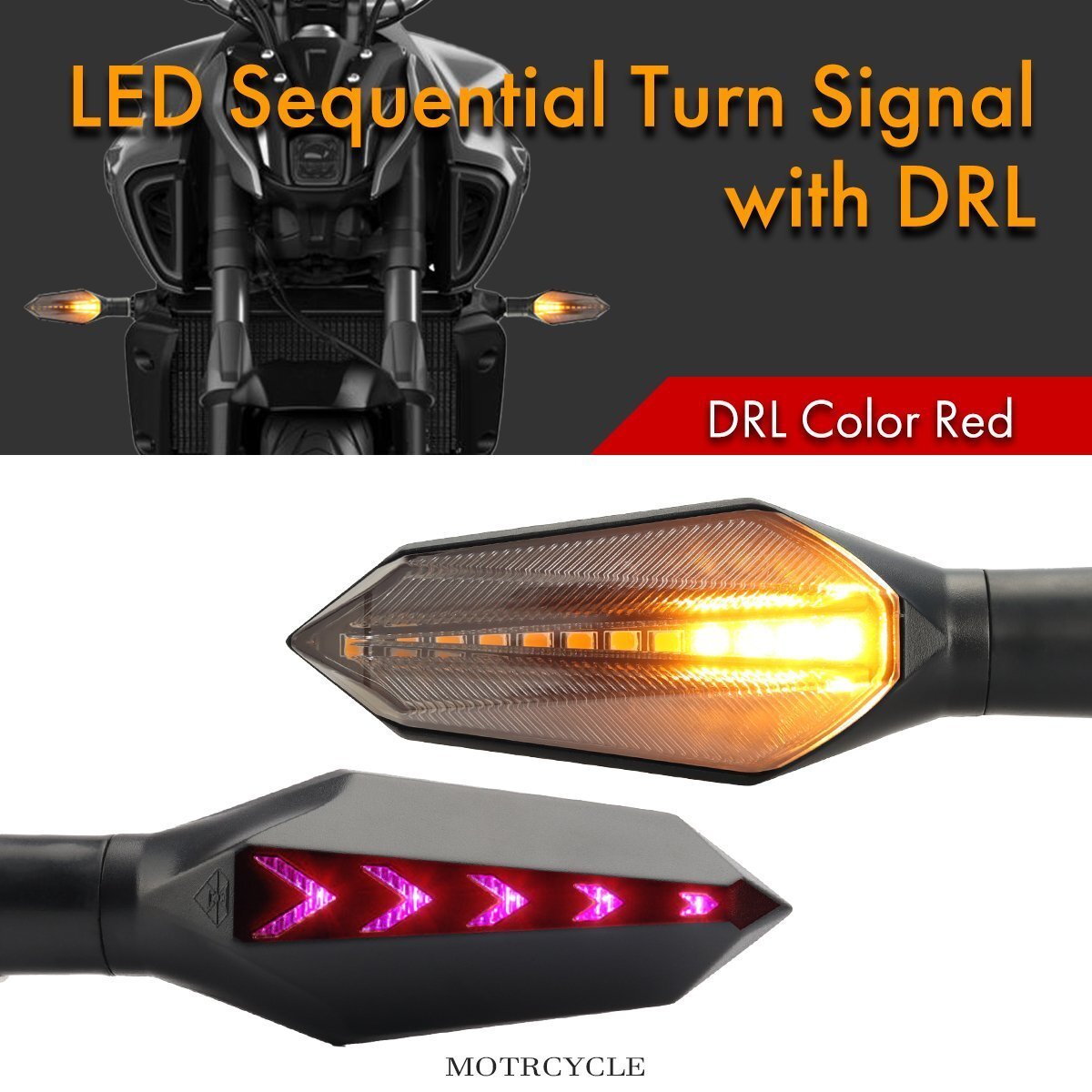 > バイク シーケンシャル ウインカー 流れるウインカー レッド デイライト マーカーランプ付き 汎用 2個セット DRL FZ504-R