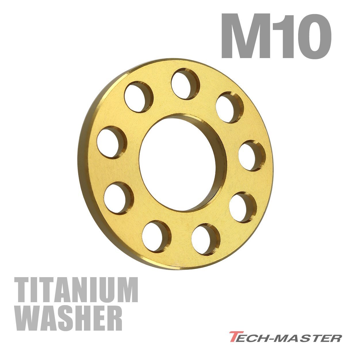 - M10 外径23mm 内径10mm 64チタン合金 平ワッシャー ホール加工 ゴールド 車/バイク ドレスアップ 1個 JA509