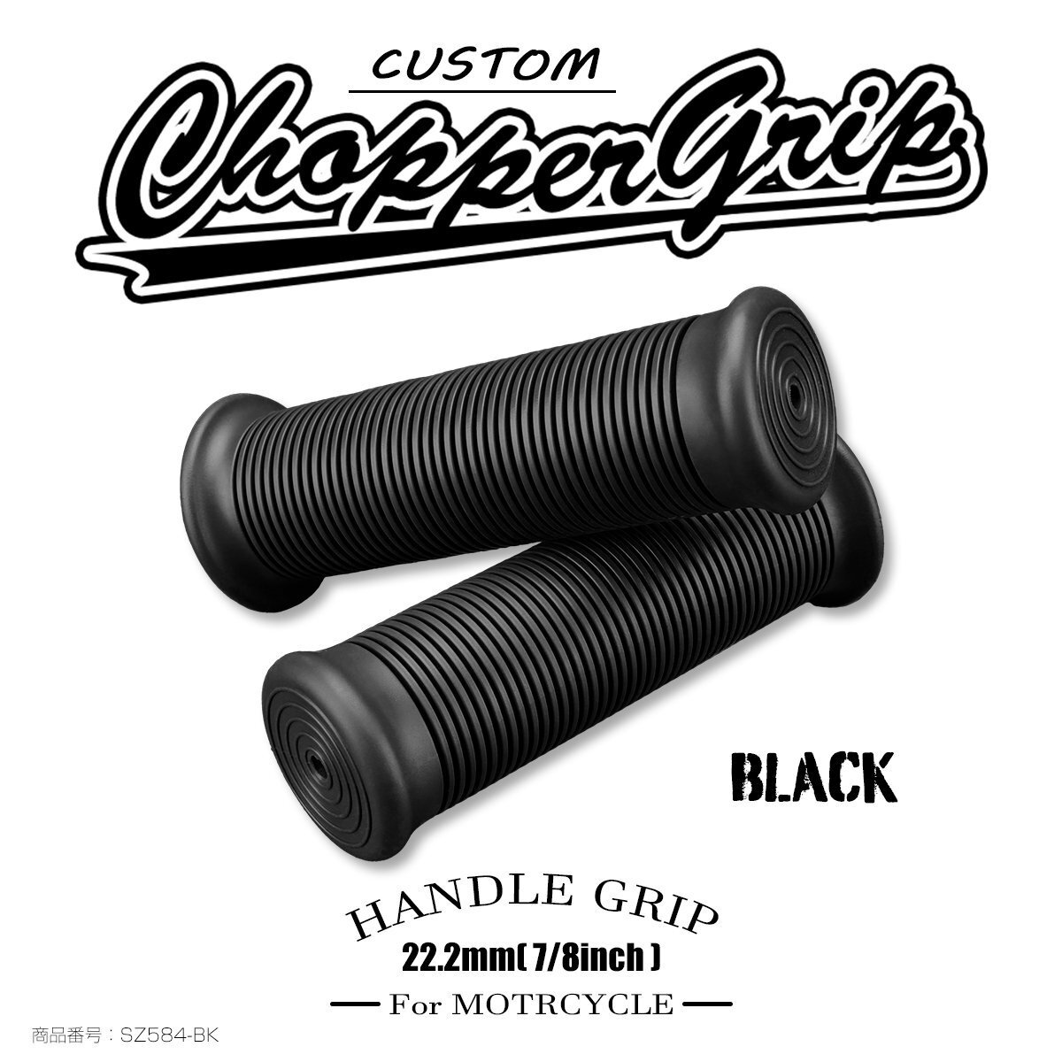 > バイク用 グリップ チョッパー ストリート カンフー カスタム グリップ 汎用 左右セット 22.2mmハンドル用 ブラック SZ584-BK