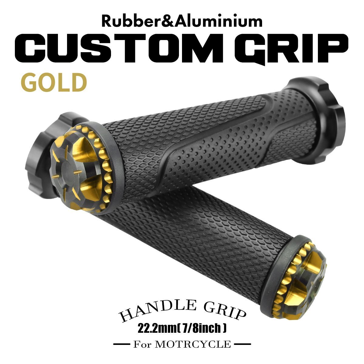 - バイク グリップ ラバー×アルミ削り出し ハイブリッドデザイン 左右セット バーエンド付き 22.2mmハンドル用 ゴールド SZ1051-G