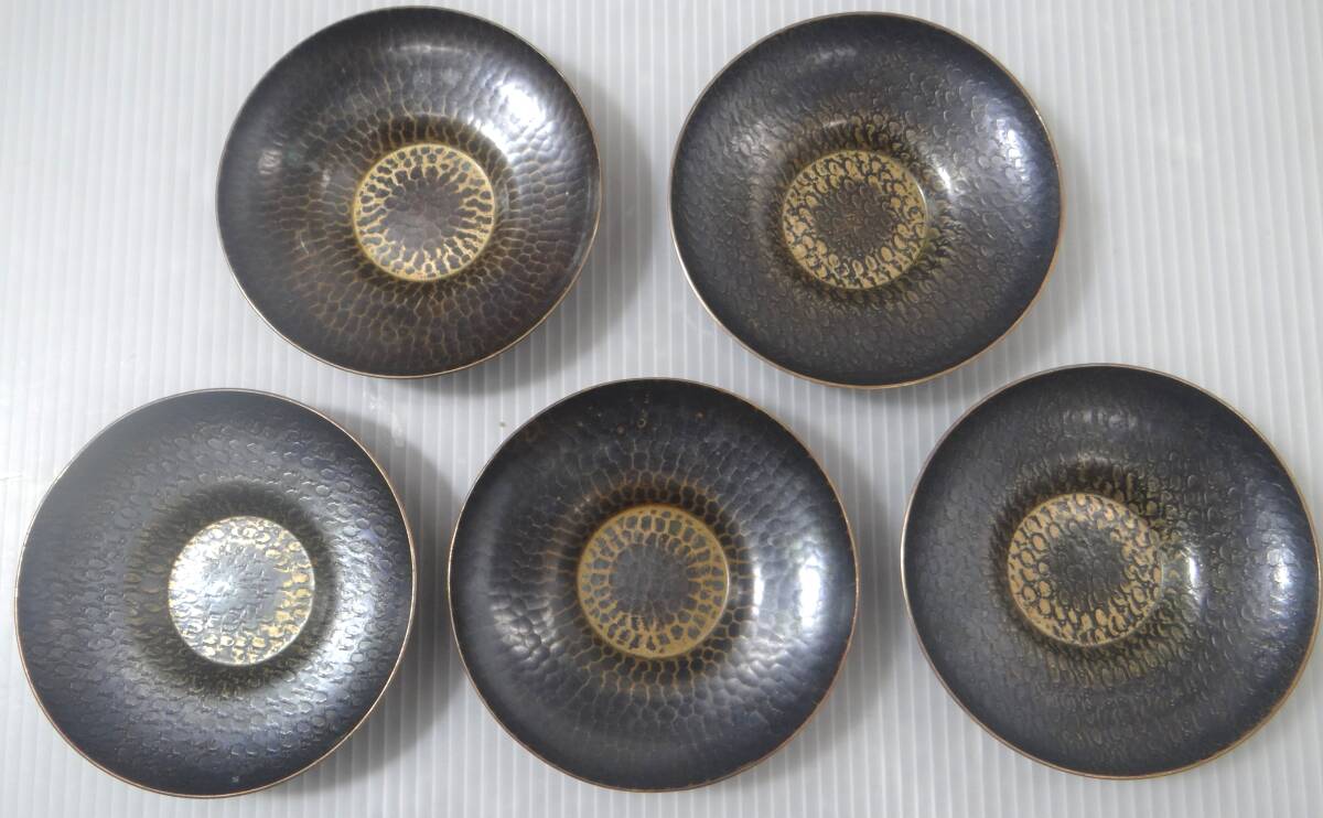 - VT2060 玉川堂 鎚目打 丸型茶托 5客セット鎚起銅器 中古品