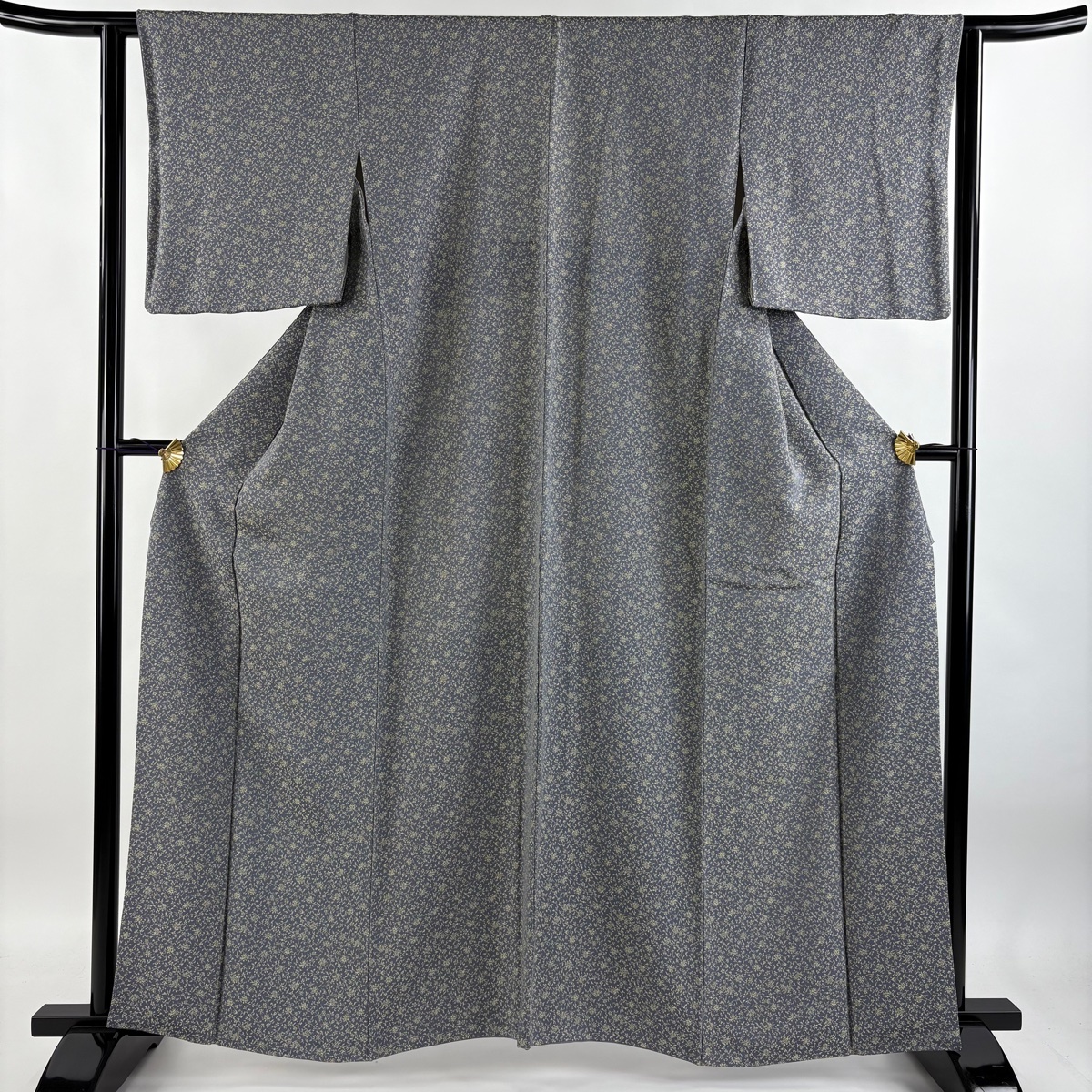 > お召 身丈161cm 裄丈63cm S 袷 黄金糸 証紙 花唐草 灰紫 正絹 美品 逸品 【中古】