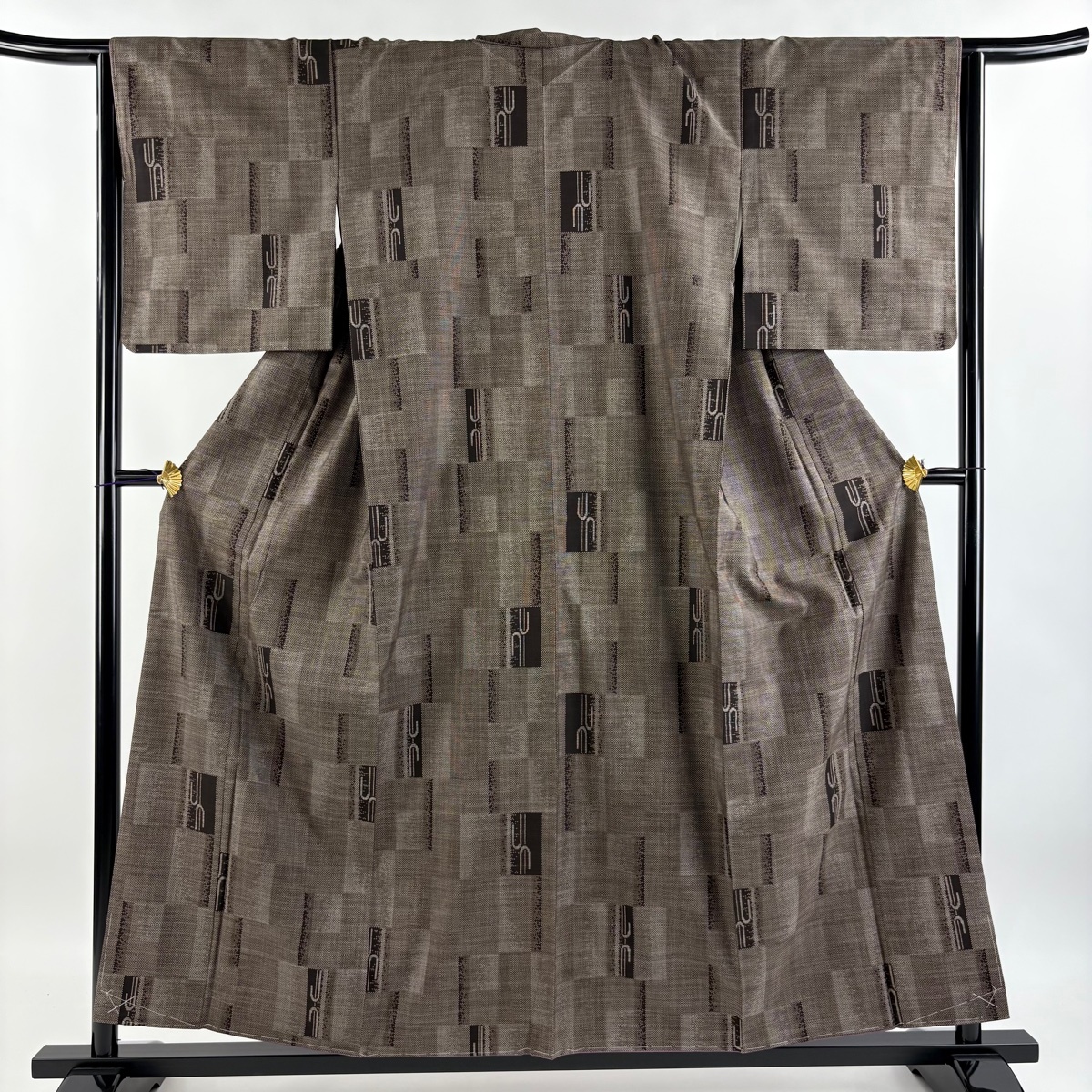 - 大島紬 身丈156cm 裄丈65cm M 袷 純泥染 証紙 幾何学模様 焦茶色 正絹 美品 名品 【中古】
