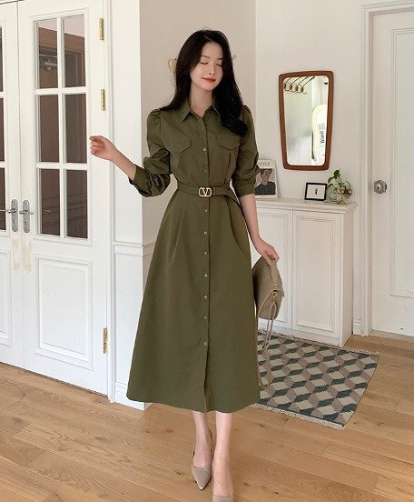- 長袖ワンピ ロングワンピ きれいめ シンプル オフィスカジュアル 仕事 通勤 フリー ブラック