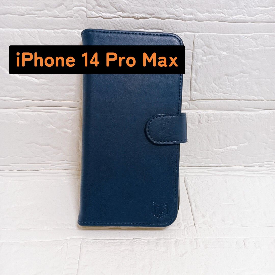 - iPhone 14 Pro Max 6.7インチ ケース 手帳型 ケース 本革 RFIDブロッキング カード収納 ブルー