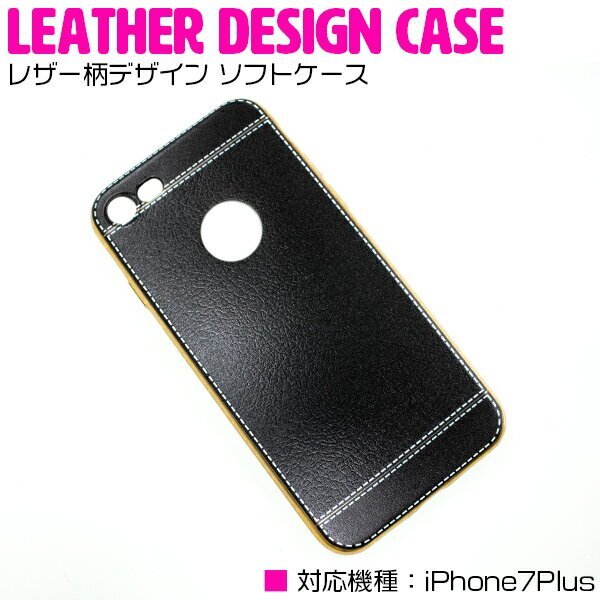 > 衝撃吸収に優れたTPU素材採用!iPhone7Plusケース iPhone7Plusカバー レザー柄デザイン ソフトケース ブラック/黒