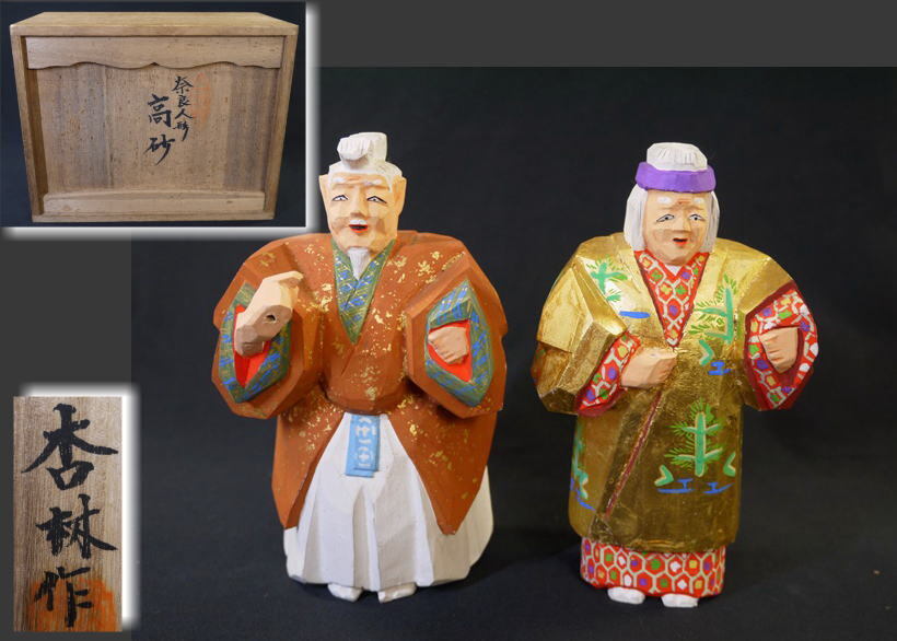 - 【ナ】奈良一刀彫 高砂 今西杏林作 奈良人形師 共箱 伝統工芸