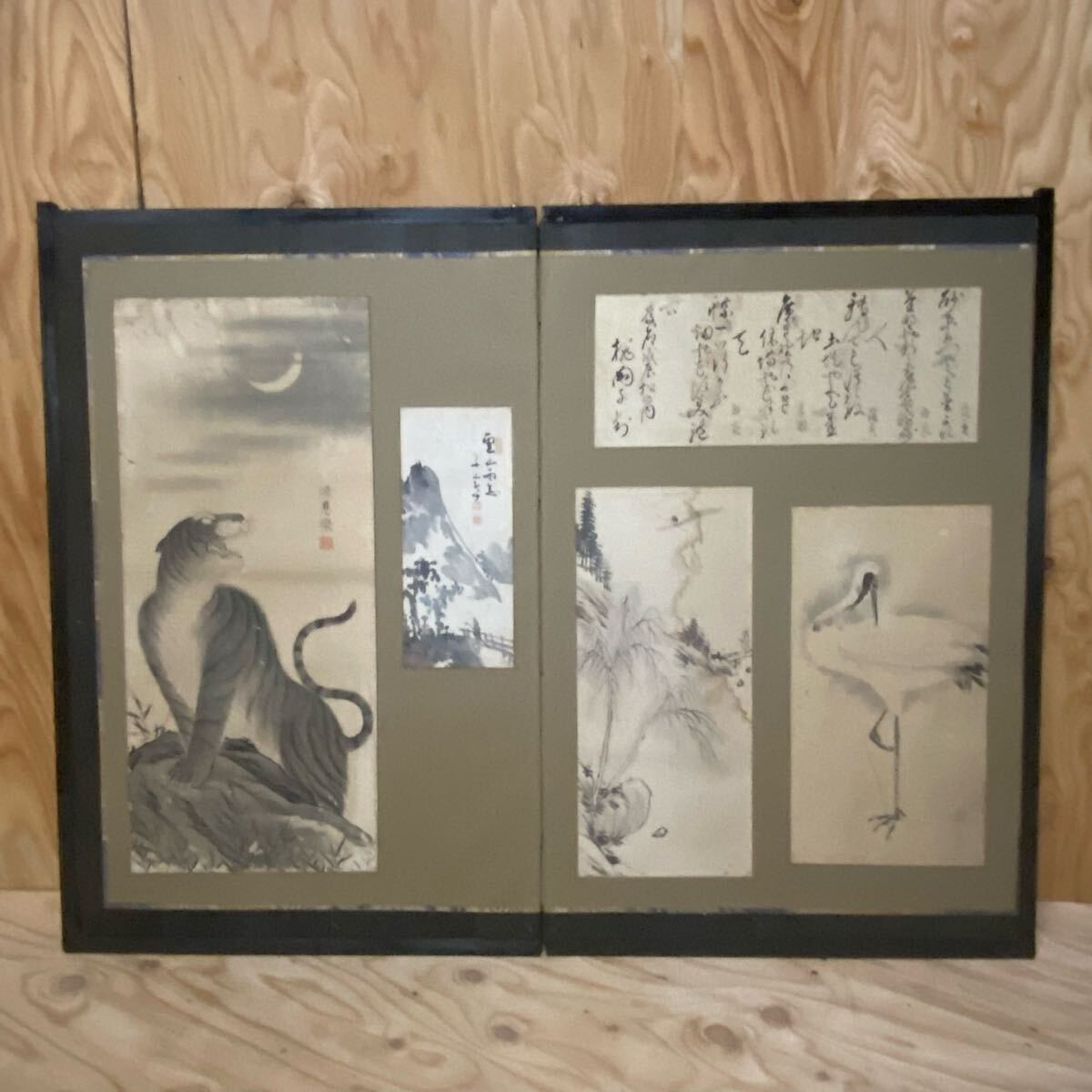 - M0905714B 円山応挙 横山春渓 虎図 トラ 掛け軸 屏風 仕切り 歴史 時代物 作家物 古美術品 美術品 中古品 現状品