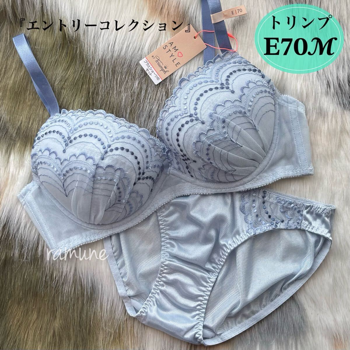 - ラスト【トリンプ*E70M*ブルー】新品 Triumph 寄せブラ&ショーツ エントリーコレクション パッド付き 刺しゅう かわいいブラ Eカップ