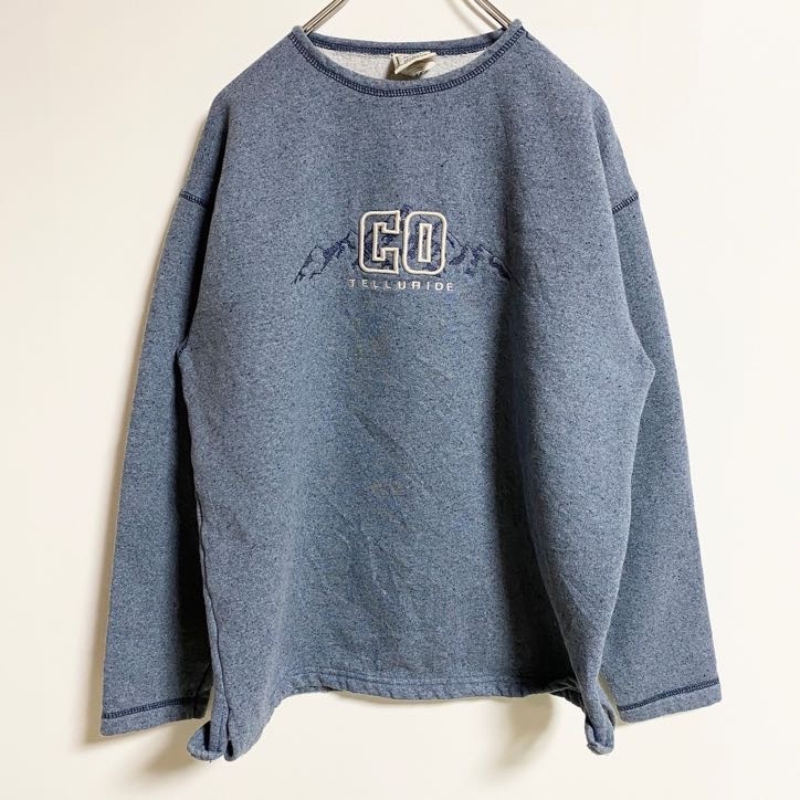 - 古着 used Green Brand Recycled 長袖ロゴ刺繍スウェット トレーナー 山 ネイビー 秋冬服 Mサイズ