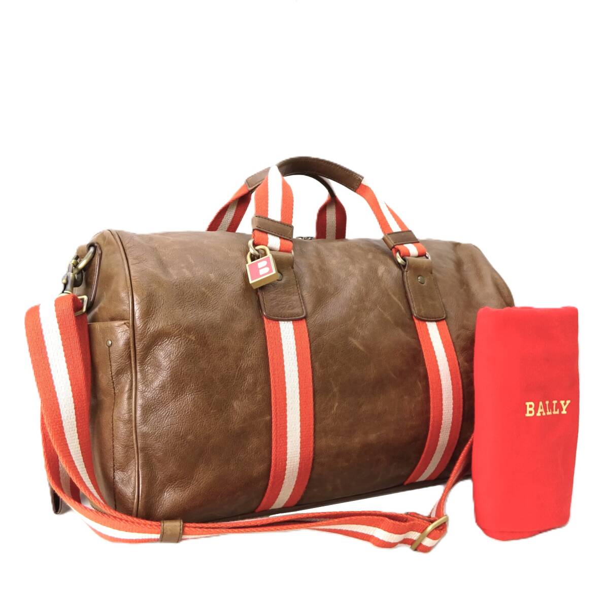 - 本物 良品■バリー BALLY■ストライプ レザー ボストン ブラウン ボストンバッグ トラベルバッグ
