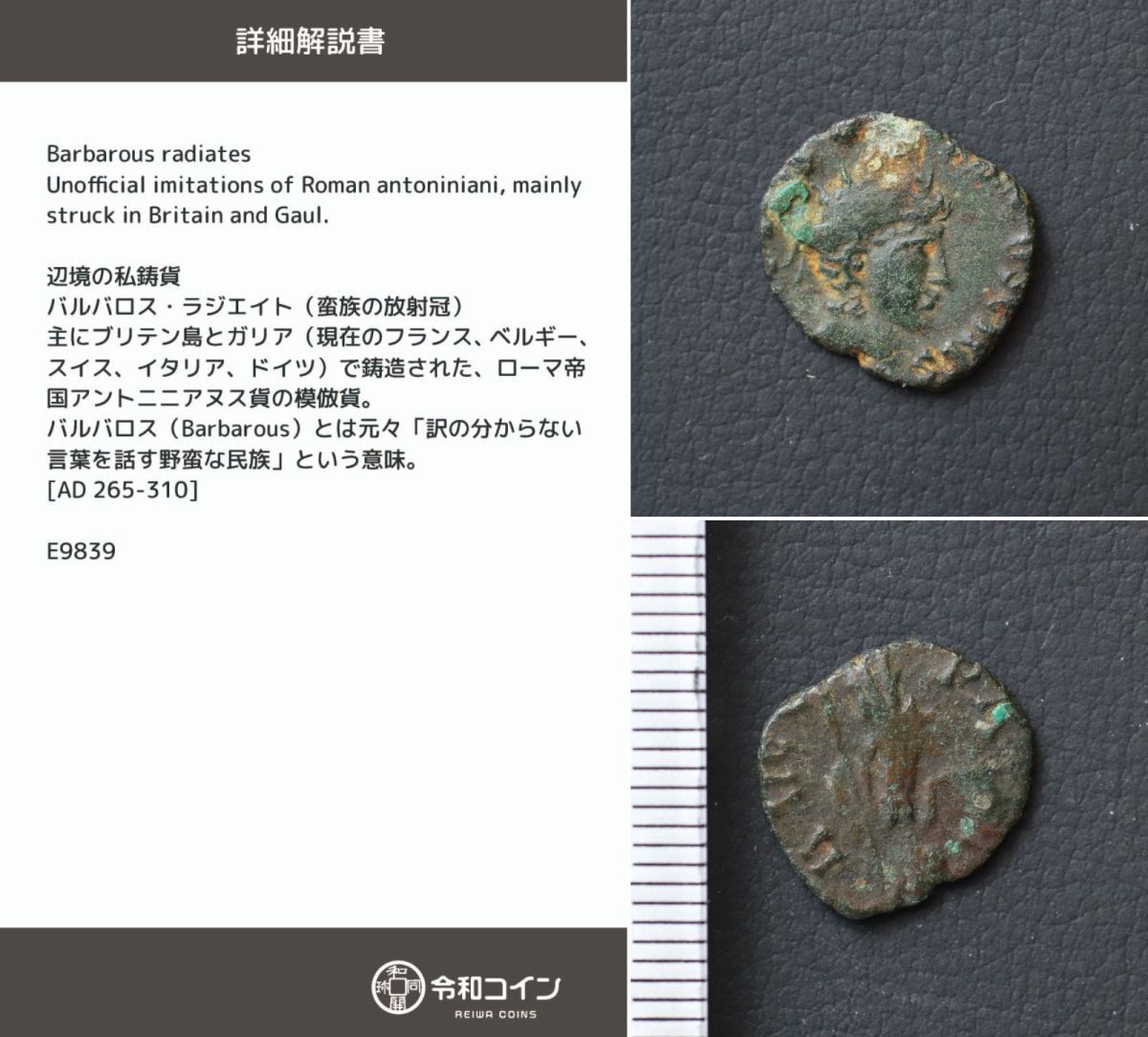 > *[令]辺境の私鋳貨「バルバロス・ラジエイト」古代ローマコインの模倣貨【詳細説明カード付】古代ギリシャ[E9839]7r0