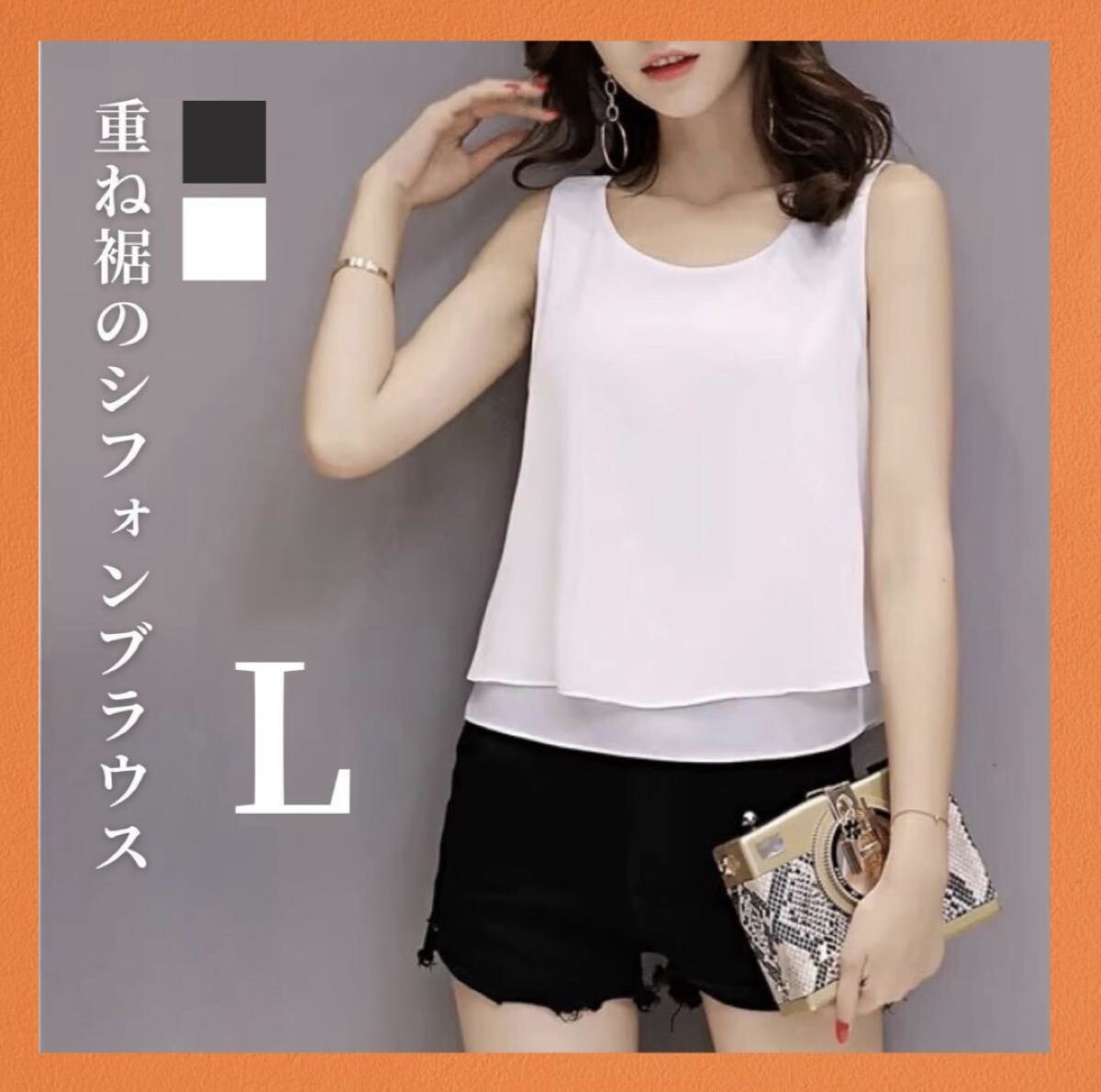 - シフォン タンクトップ L ラウンドネック キャミソール クルーネック ホワイト