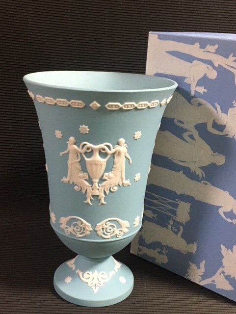 - ◎ウェッジウッド ターコイズジャスパー 綺麗な大花瓶 「天女」元箱付◎ri希少色