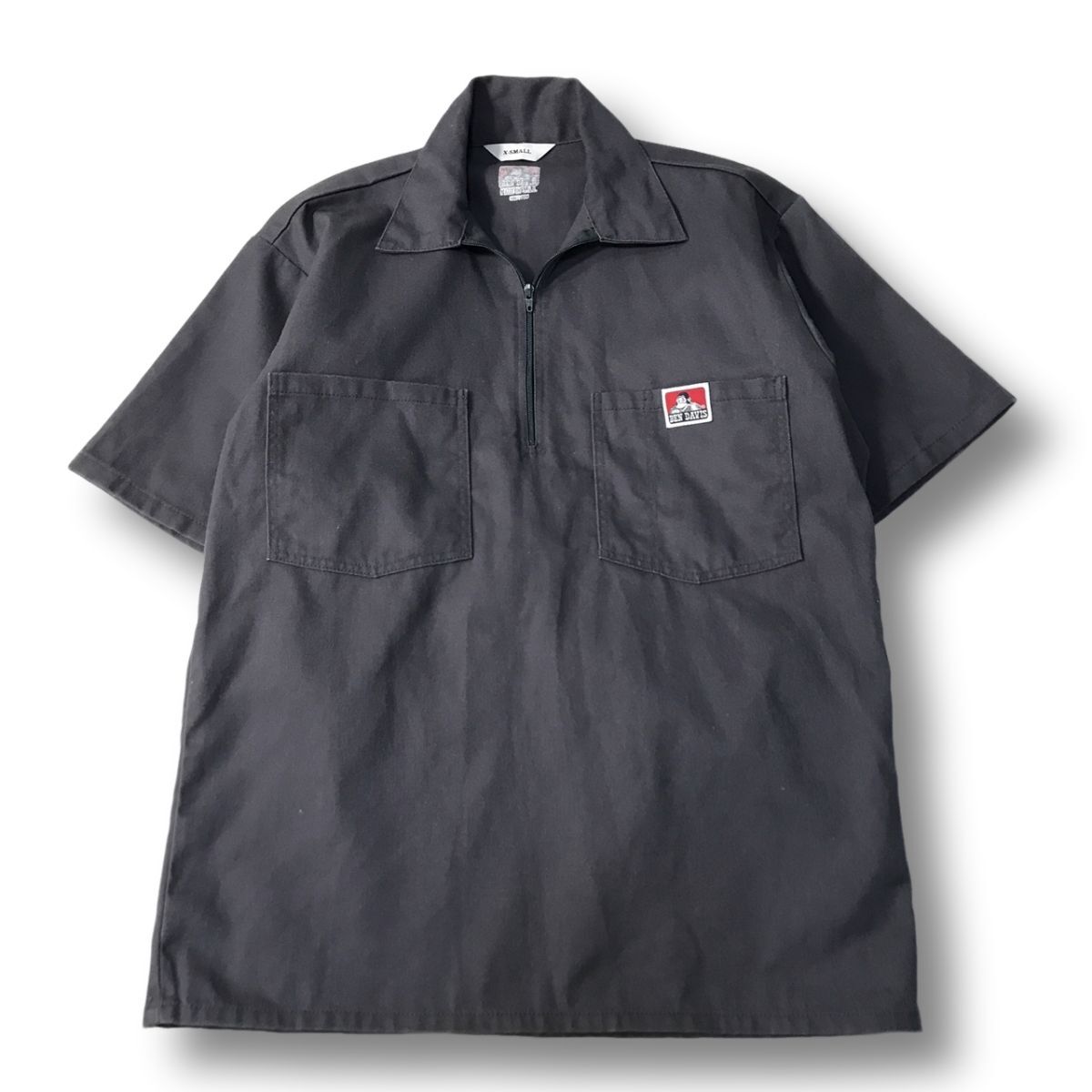 - 《良品◎》BEN DAVIS ベンデイビス★アメリカ製*ハーフジップ*ワンポイント*半袖シャツ*グレー*サイズXS(MS4831)◆S60