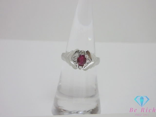 - Pt900 プラチナ ルビー 0.50ct ダイヤモンド 0.07ct 付 デザイン リング 指輪 13号 メレ 宝石 ジュエリー 【中古】【送料無料】 th13355