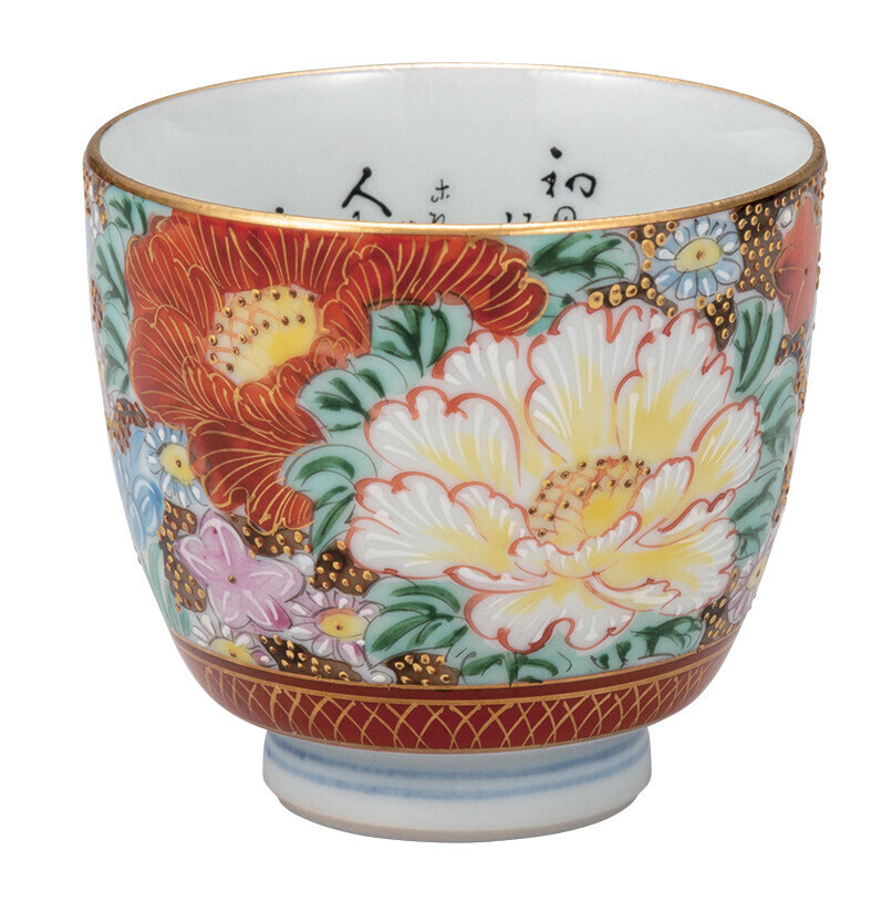- 九谷焼! 錦生窯 ☆本金極上花詰・ぐい呑(細字入)☆ K9-1220 新品 酒盃 サカズキ 杯 盃 お猪口 馬上杯 ギフト