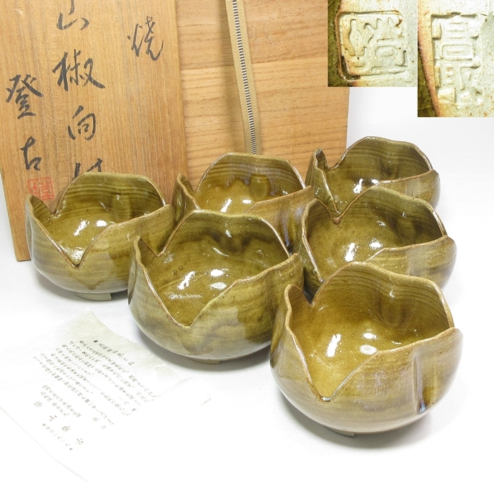 > 【B0157】茶懐石 高取焼【 笹山 登古 】作 割山椒向付 6客 小鉢 共箱 即決 送料込み