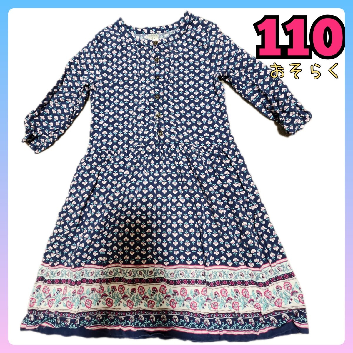 > 110 花柄 ネイビー 長袖 ワンピース 秋服 秋冬 スカート フラワー ピンク 春服 女の子 メルヘン