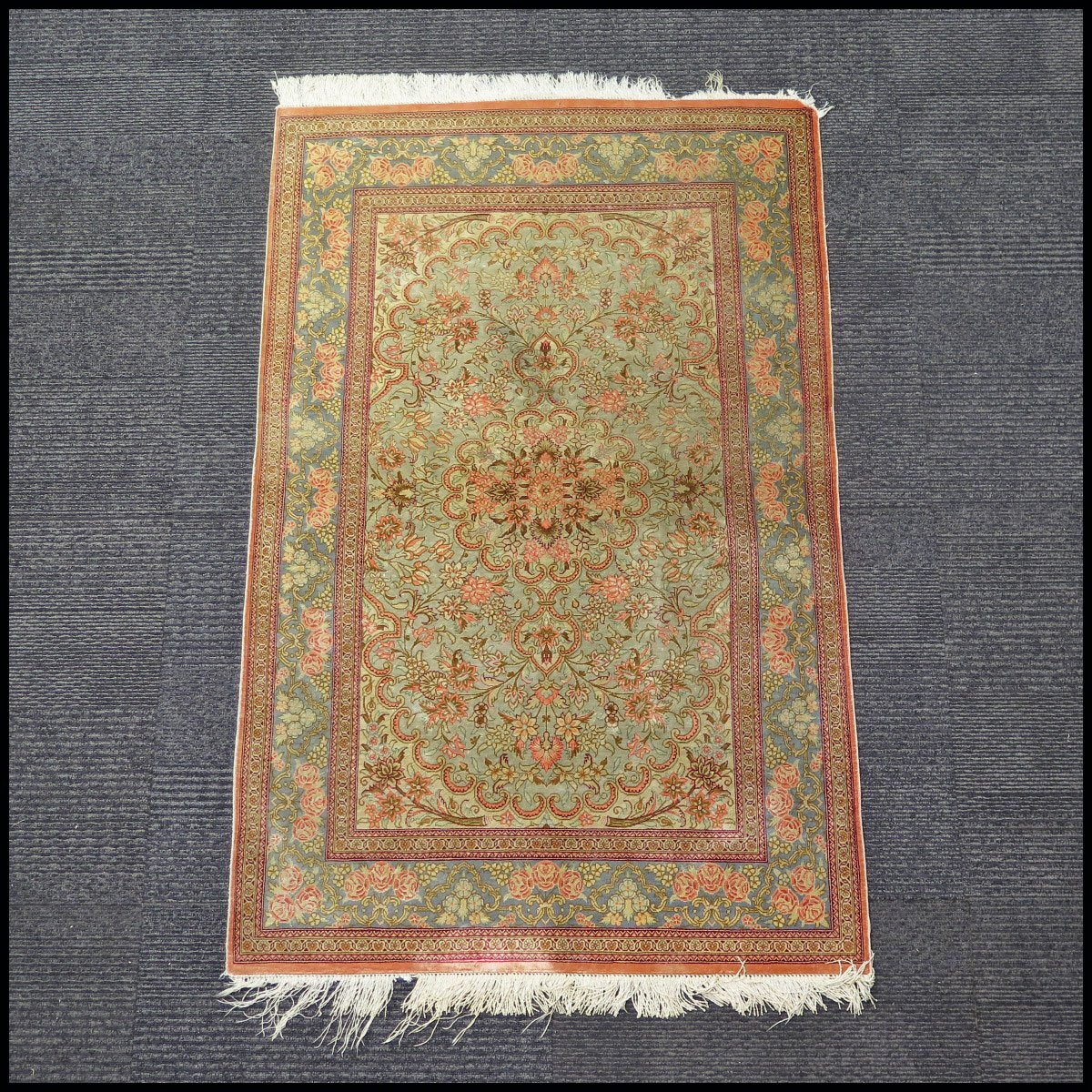 > ●M) ペルシャ絨毯 サイズ:1210×780mm シルク? 手織り 【現状品】 カーペット ラグ 敷物 玄関マット