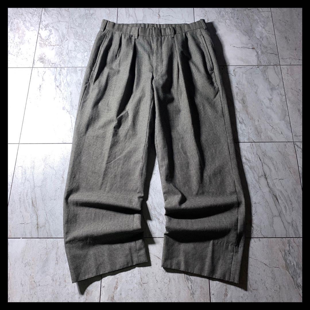 - 90s ラルフローレン 2タック ウール ワイド スラックス 千鳥格子柄 グレー