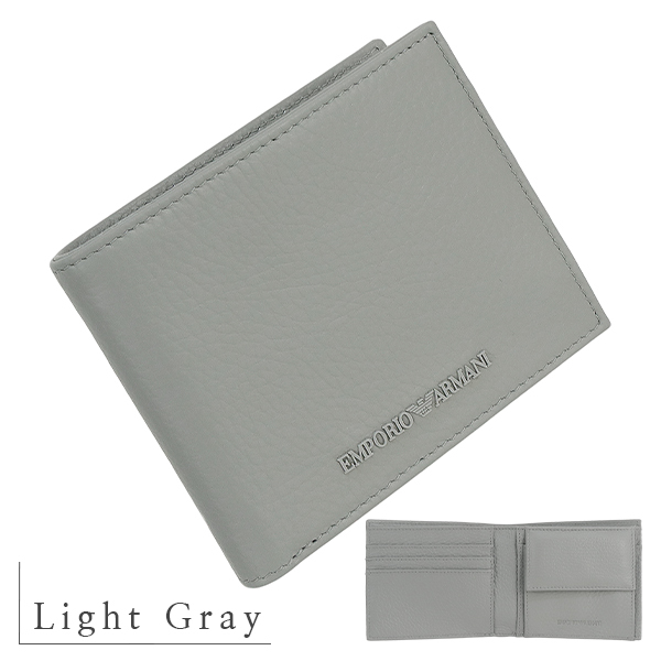 > エンポリオアルマーニ 財布 二つ折り財布 コインポケットウォレット タンブルレザー ライトグレー 155928
