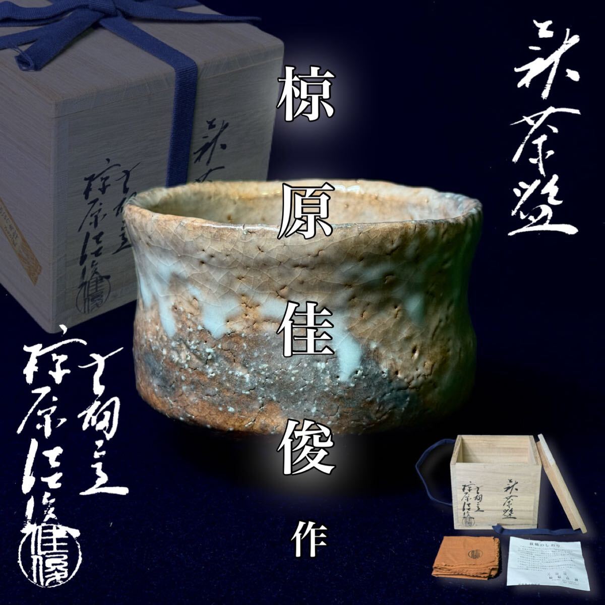 - MJ250903-11【真作保証/未使用】萩焼 古畑窯 椋原佳俊 作 萩茶碗 梅花皮 共箱/共布/栞 茶道具 萩茶碗
