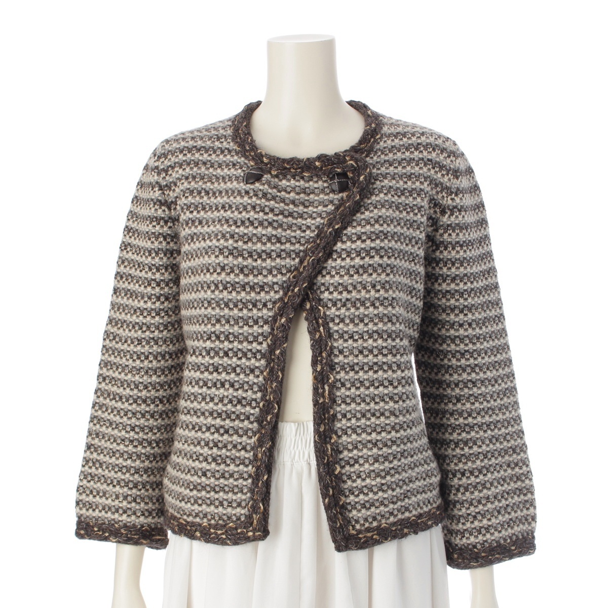 - シャネル 07A カシミヤ ウール ツイード ニット ノーカラージャケット P31827 ブラウン 40【中古】