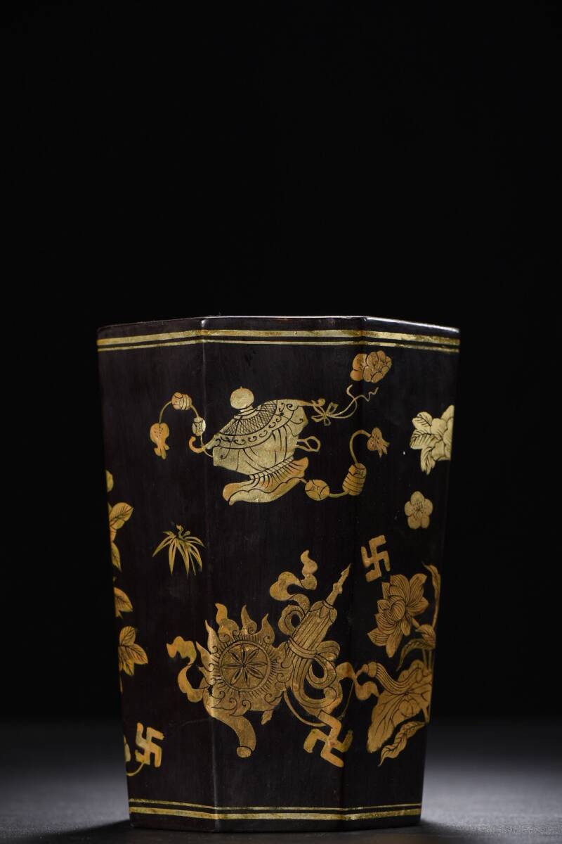 - 蔵友旧蔵出 木胎漆器彫 描真金 八寶紋 筆筒 供養品 置物擺件 古賞物 中国古玩 中国古美術品